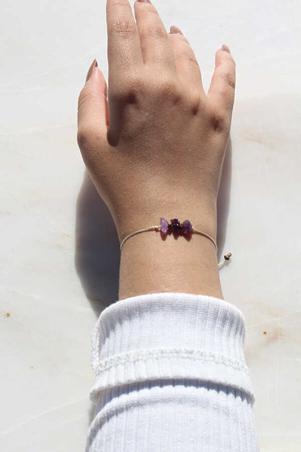 Bu doğal ametist bileklik, hem şık bir aksesuar hem de enerjini yenileyen güçlü bir taş olarak seninle olacak.